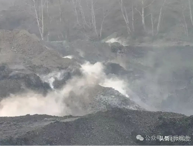 山西省忻州市寧武縣鳳凰鎮(zhèn)大運(yùn)路旁邊,煙霧從地下冒出來,挖機(jī)在一邊干活,在冒煙的地方黃土里有煤渣,氣味難聞!