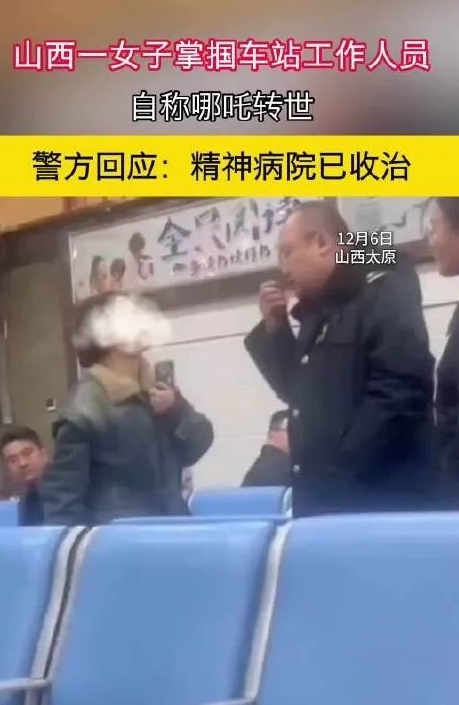 12月6日,山西太原,太原火車(chē)站一女子疑似精神失常,掌摑車(chē)站工作人員,還自稱哪吒轉(zhuǎn)世。