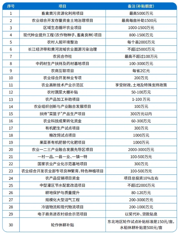 近日,財(cái)政部提前下達(dá)2025年中央財(cái)政銜接推進(jìn)鄉(xiāng)村振興補(bǔ)助資金,全國(guó)資金規(guī)模共計(jì)15930000萬(wàn)元。可以申請(qǐng)銜接推進(jìn)鄉(xiāng)村振興補(bǔ)助資金的項(xiàng)目,通常旨在加強(qiáng)鄉(xiāng)村產(chǎn)業(yè)發(fā)展、資源利用、旅游開(kāi)發(fā)以及改善農(nóng)村基礎(chǔ)設(shè)施和公共服務(wù)等。本文梳理了鄉(xiāng)村振興銜接示范區(qū)、鄉(xiāng)村振興集中推進(jìn)區(qū)、國(guó)家級(jí)農(nóng)業(yè)產(chǎn)業(yè)強(qiáng)鎮(zhèn)、國(guó)家級(jí)現(xiàn)代農(nóng)業(yè)產(chǎn)業(yè)園、國(guó)家級(jí)優(yōu)勢(shì)特色產(chǎn)業(yè)集群等15個(gè)重點(diǎn)申報(bào)項(xiàng)目、申報(bào)時(shí)間、申報(bào)主體、政策獎(jiǎng)勵(lì)等內(nèi)容,僅供參考。
