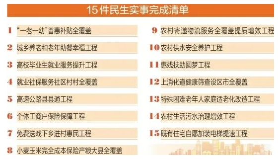 15件民生實(shí)事件件關(guān)乎民生福祉,涉及養(yǎng)老托育、就業(yè)社保、疾病篩查、鄉(xiāng)村振興、環(huán)境治理等百姓家事和發(fā)展大事,著眼解決群眾急難愁盼問(wèn)題,著力補(bǔ)齊城鄉(xiāng)公共服務(wù)短板,加強(qiáng)普惠性、基礎(chǔ)性、兜底性民生建設(shè),切實(shí)增強(qiáng)群眾獲得感幸福感安全感。