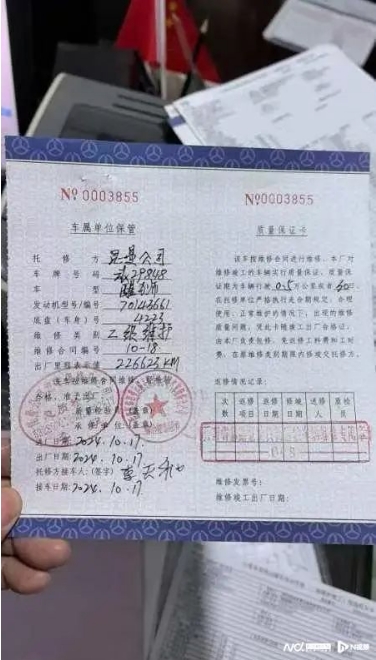 在昆曼公司,專家組抽查?;奋囕v云K29848號(hào)的二級(jí)維護(hù)記錄時(shí)發(fā)現(xiàn),該車輛的維修竣工出廠合格證和二級(jí)維修合格證均為10月17日。