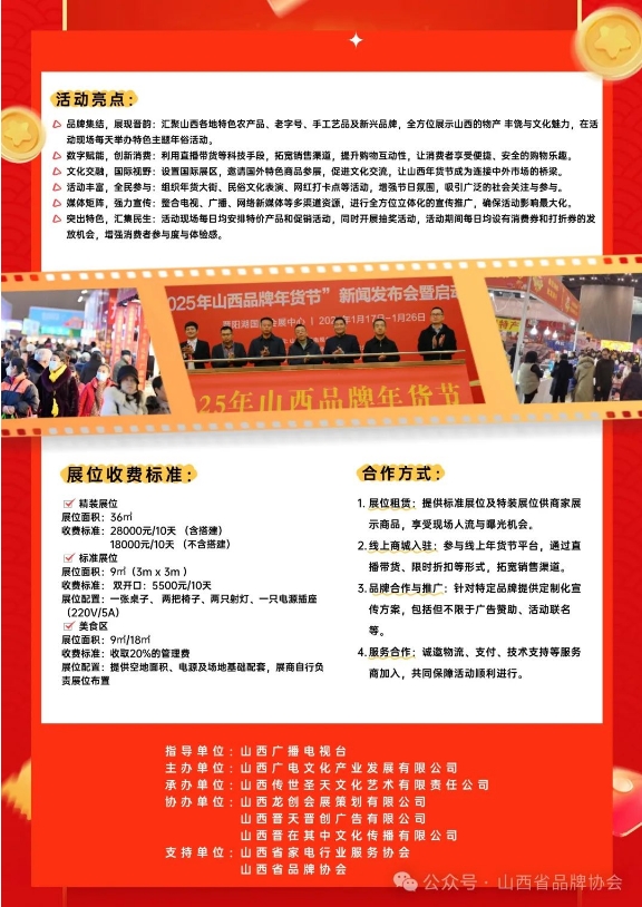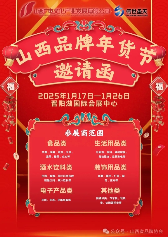 2025年山西品牌年貨節(jié)招展工作即將結(jié)束,僅剩部分展位,有需要的朋友請(qǐng)盡快與組委會(huì)聯(lián)系!