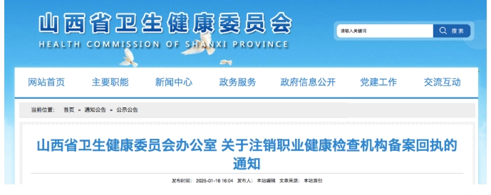 根據(jù)《山西省職業(yè)健康檢查機(jī)構(gòu)備案管理辦法》要求,現(xiàn)對(duì)陽(yáng)高民澤醫(yī)院、西坪諾爾泰醫(yī)院、大同仁愛(ài)醫(yī)院、大同通濟(jì)中西醫(yī)結(jié)合醫(yī)院、晉城新太行中醫(yī)醫(yī)院、應(yīng)縣濟(jì)民醫(yī)院、襄汾北眾骨科醫(yī)院、運(yùn)城護(hù)理職業(yè)學(xué)院附屬醫(yī)院、汾陽(yáng)前輝醫(yī)院、長(zhǎng)治盈康老年護(hù)理院、長(zhǎng)治屯留區(qū)嘉之慧醫(yī)院、山西陽(yáng)泉固興醫(yī)院、山西亞能安全醫(yī)療科技有限公司摩天石門(mén)診部等13家職業(yè)健康檢查機(jī)構(gòu)備案回執(zhí)予以注銷(xiāo)。