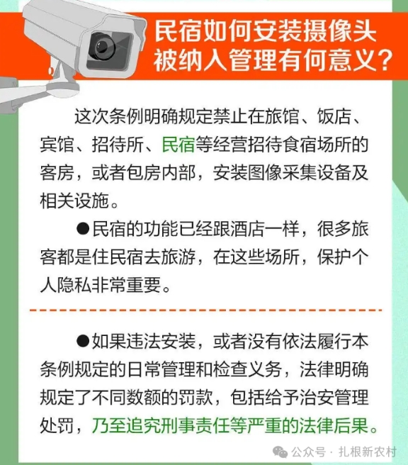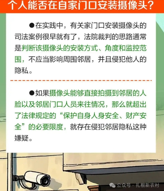 雖說條例中并沒有直接禁止在農(nóng)村家門口安裝監(jiān)控,但對監(jiān)控安裝的規(guī)范和約束卻有著明確的要求。