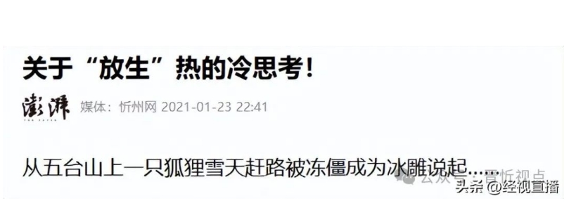 記者搜索發(fā)現(xiàn),山西五臺山此前就曾發(fā)生過狐貍死亡事件。據(jù)忻州網(wǎng)報道,2020年歲末,五臺山上一只狐貍雪天趕路被凍僵,更有不少被放生的狐貍被同類相食。有知情人士透露,這些被放生的狐貍大多都是從外省養(yǎng)殖場買來放生的,每只價格數(shù)百元不等。在2020年的一次大放生活動中,有人一次放生了500多只狐貍。