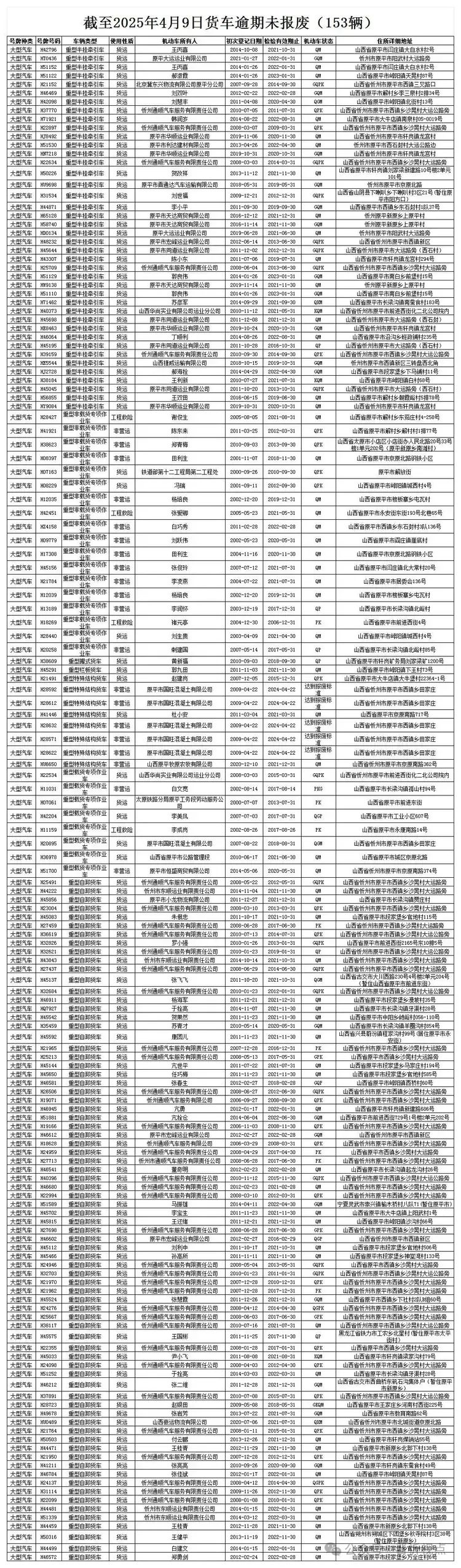 為了進(jìn)一步做好重特大道路交通事故預(yù)防工作,根據(jù)省廳交管局及忻州交警支隊(duì)《關(guān)于對(duì)逾期未報(bào)廢、逾期未檢驗(yàn)、違法未處理重點(diǎn)車輛源頭隱患清零的通知》要求,原平市公安局交通警察大隊(duì)已將逾期未檢驗(yàn)、逾期未報(bào)廢、違法未處理的重點(diǎn)車輛錄入機(jī)動(dòng)車緝查布控系統(tǒng),并在全省范圍內(nèi)布控,依法從嚴(yán)查扣?,F(xiàn)對(duì)原平市逾期未報(bào)廢的重型貨車曝光如下: