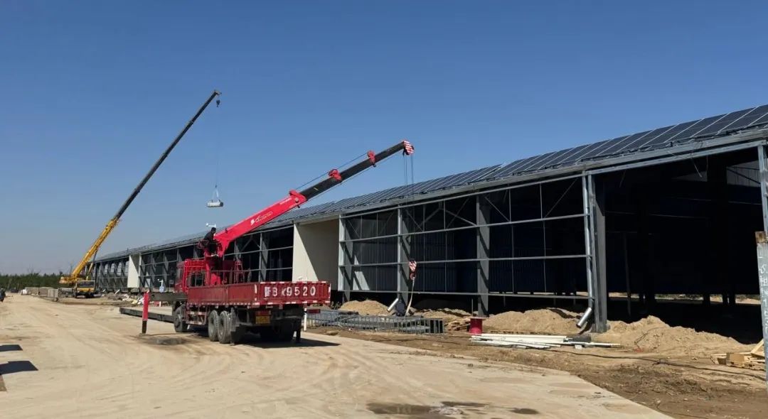 據(jù)項(xiàng)目負(fù)責(zé)人介紹,今年擬投資1億元,建設(shè)8棟標(biāo)準(zhǔn)化牛舍及運(yùn)動(dòng)場(chǎng)、飼料加工車(chē)間、3座智能倉(cāng)儲(chǔ)庫(kù)及6兆瓦分布式光伏電站,總建筑面積達(dá)8萬(wàn)平方米。截至目前,已完成12000平方米堆貯平臺(tái)建設(shè),場(chǎng)區(qū)土地平整約完成180畝,1-3號(hào)牛棚鋼結(jié)構(gòu)完成70%,1-3號(hào)干草棚共計(jì)9000平方米基本完成,6兆瓦分布式光伏電站正在建設(shè)中。