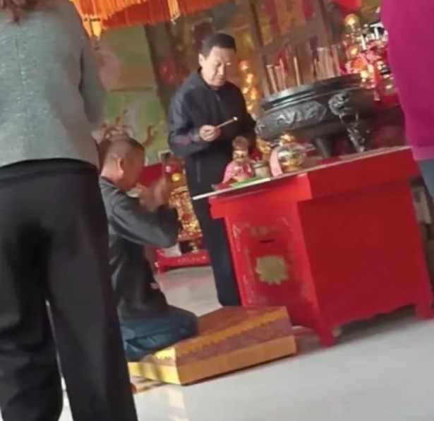 懷仁市海北頭鄉(xiāng)兩位神秘禮佛之人,兩人形態(tài)虔誠,燒香、拜佛、掃二維碼布施一氣呵成,甚是熟練。據(jù)其和人交談之語,兩人似鄉(xiāng)鎮(zhèn)干部。