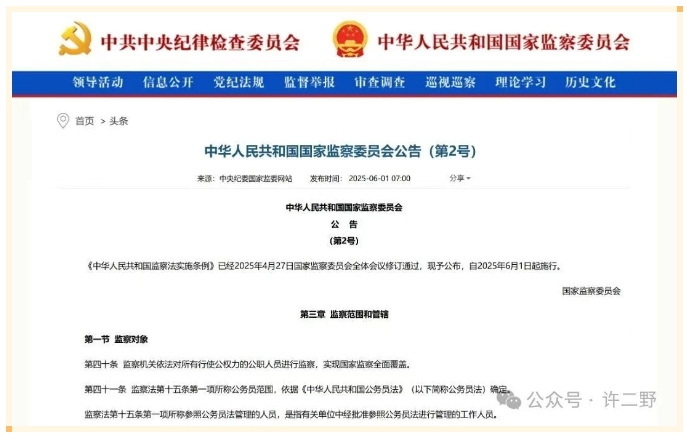 新修訂《監(jiān)察法實(shí)施條例》6月1日起實(shí)施,其中最具突破性的條款之一,
