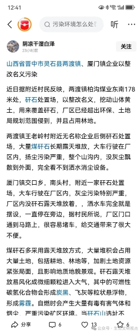 山西省晉中市靈石縣兩渡鎮(zhèn)、廈門(mén)鎮(zhèn)企業(yè)以整改名義污染