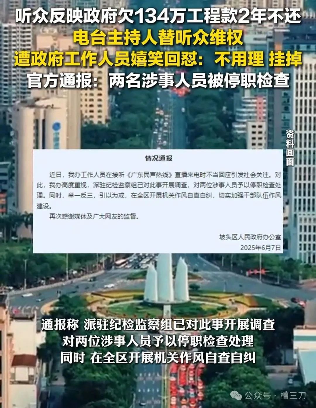 當主持人進一步聯(lián)系坡頭區(qū)相關部門時,電話那頭傳來工作人員的嬉笑聲,一名男性指示接電話的女性“不用理,掛掉”,這一傲慢態(tài)度通過直播畫面被全網(wǎng)傳播。