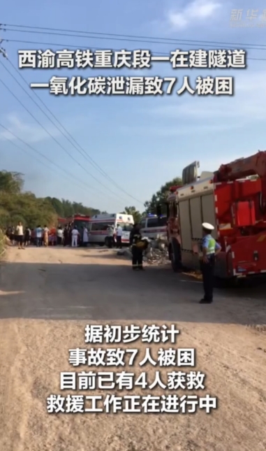 據(jù)新華社報(bào)道,記者從重慶市相關(guān)部門(mén)獲悉,17日下午,西渝高鐵重慶段項(xiàng)目在建的中梁山隧道發(fā)生一氧化碳泄漏事故,據(jù)初步統(tǒng)計(jì),事故致7人被困,目前已有4人獲救,救援工作正在進(jìn)行中。