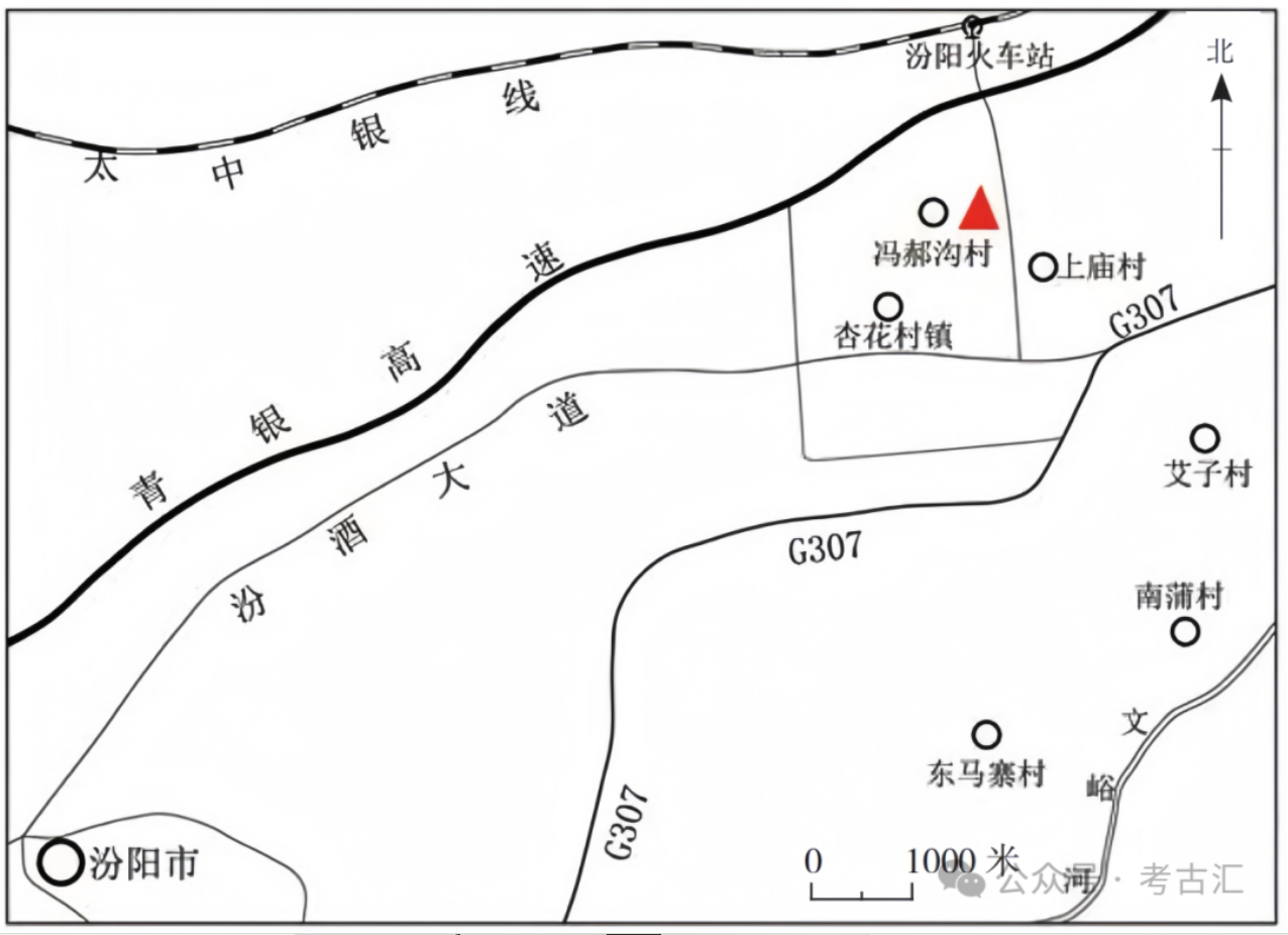 該考古項(xiàng)目位于汾陽(yáng)市杏花村鎮(zhèn)馮郝溝村東北約200米。