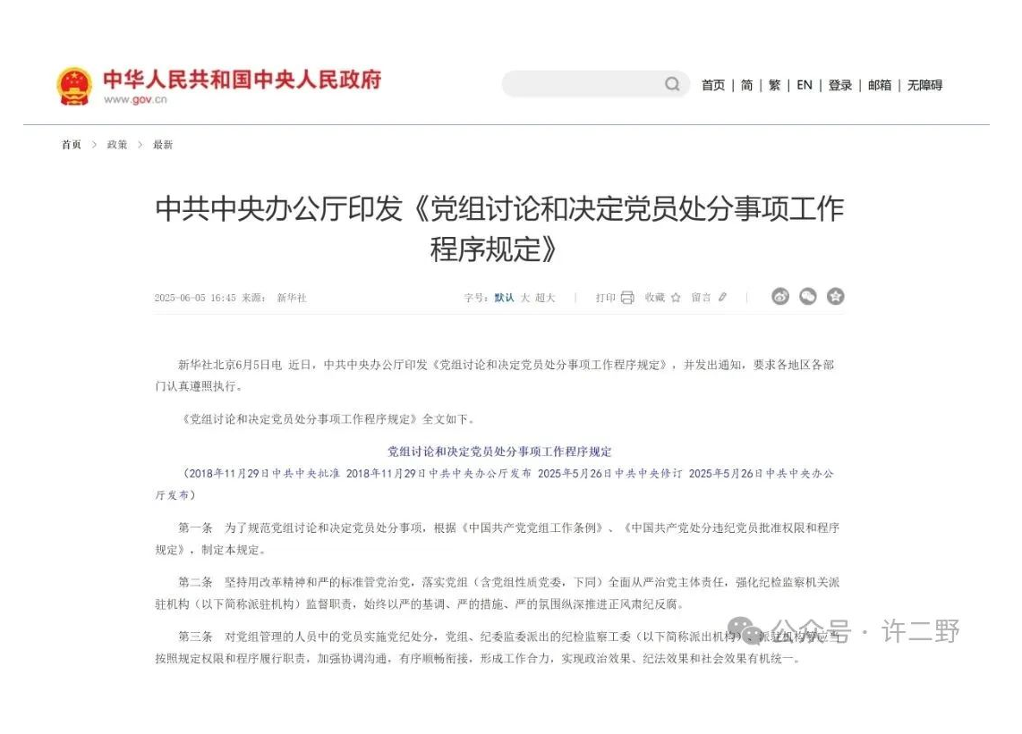 新版《黨組討論和決定黨員處分事項工作程序規(guī)定》正式實施,
