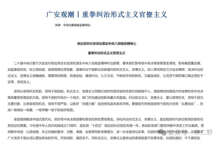 最新紀(jì)律通報(bào)指出:凡以會(huì)議貫徹會(huì)議、以文件落實(shí)文件,實(shí)際不作為的,屬典型形式主義。