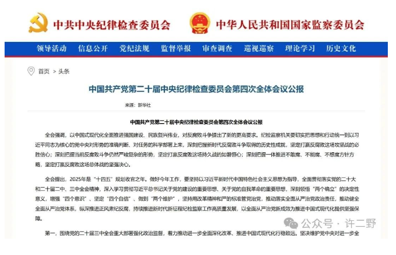 2025年伊始,《二十屆中紀(jì)委四次全會》公報提出,要加強對配偶、子女及其配偶,違規(guī)經(jīng)商辦企業(yè)等情況的及時預(yù)警監(jiān)督,