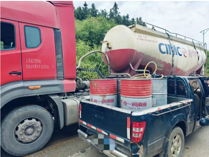 經(jīng)查,6月以來(lái),犯罪嫌疑人蔡某、魏某為圖方便,在未取得任何許可、無(wú)安全防護(hù)措施的情況下,利用皮卡車裝載5個(gè)200升油桶往返加油站與工地,非法進(jìn)行柴油運(yùn)輸、儲(chǔ)存和流動(dòng)加注。