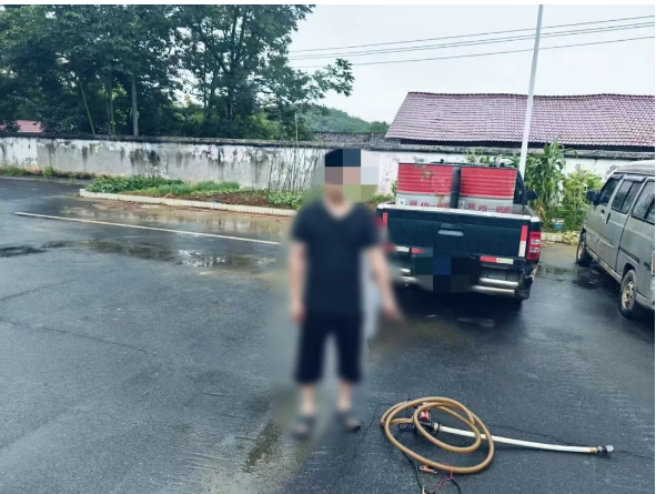 6月29日中午,雙林派出所民輔警巡邏至國(guó)家電投分宜發(fā)電廠某工地外圍時(shí),發(fā)現(xiàn)一男子正用皮卡車上的設(shè)備為重型半掛車加注疑似柴油。民警立即盤查,現(xiàn)場(chǎng)查獲儲(chǔ)油桶、抽油電機(jī)等非法加油設(shè)備及大量疑似柴油。經(jīng)檢測(cè),確認(rèn)液體為危險(xiǎn)化學(xué)品柴油。