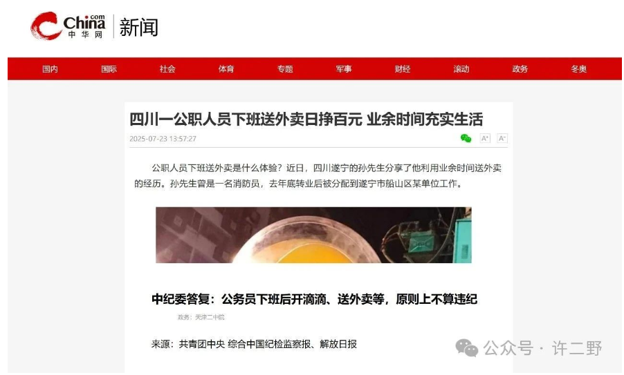 這也是為什么,四川那位送外賣的公務(wù)員沒(méi)有受到處分。
