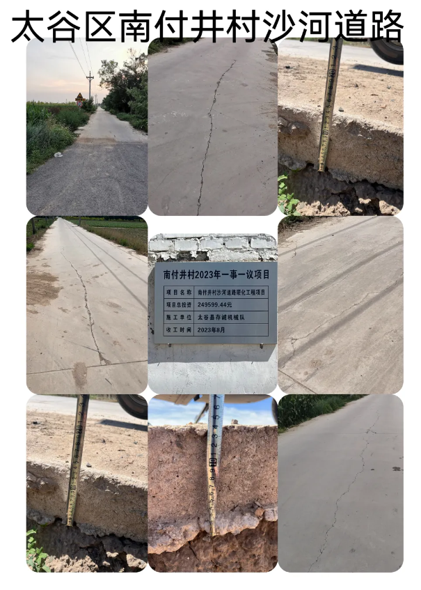 該項目于2023年8月開工,施工單位為太谷縣存誠機械隊,總投資249599.44元,該項目為一事一議工程,完工后不久就暴露出明顯的質(zhì)量問題。