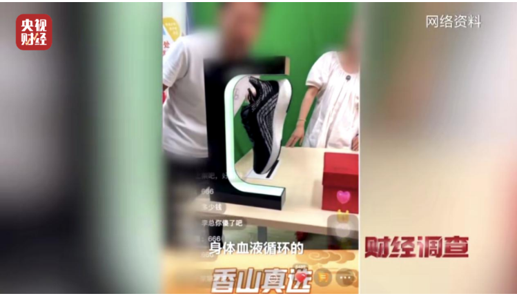 記者假稱合作,進(jìn)入了直播間。主播不斷宣傳一款磁懸浮鞋和鞋墊的獨(dú)家專利及神奇功效。