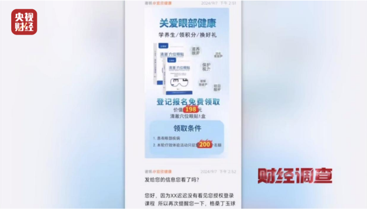 記者在臥底期間,公司主要銷售的產(chǎn)品是一款名為“固本明目顆?!钡难劭祁愃幤?,所以公司購(gòu)買的個(gè)人信息都是患有各類眼部疾病的老年人。然而,在推銷這款“固本明目顆?!钡囊曨l課程中,涉及的內(nèi)容遠(yuǎn)遠(yuǎn)超過了這種藥的作用范圍。