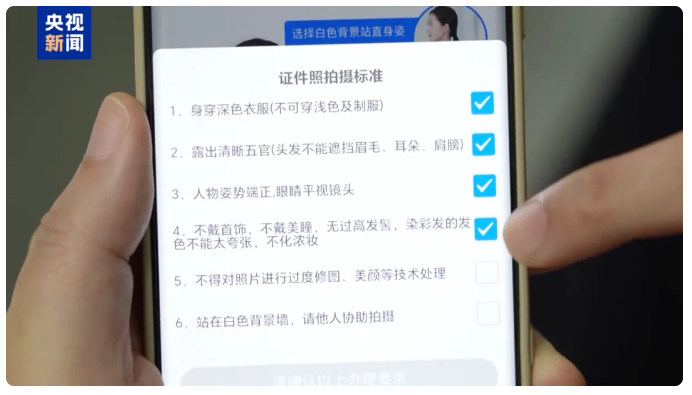 民警介紹,身份證拍照是白色背景,所以盡量穿深色有領上衣,防止和背景混淆。不能化濃妝,發(fā)型不能過于蓬松高聳,不能遮蓋眉毛、耳朵,不能染過于艷麗的彩發(fā),不能佩戴較大的耳環(huán)、項鏈等首飾。