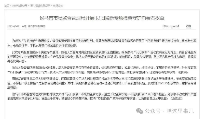 侯馬市市場(chǎng)監(jiān)督管理局這不,就出動(dòng)查了!這波檢查,重點(diǎn)盯的是家電、手機(jī)、電動(dòng)車這幾個(gè)老百姓最?!皳Q”的門類。