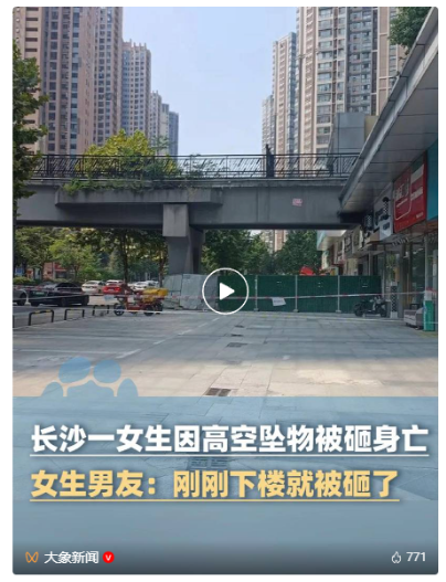 8月1日19時(shí)許,一名年僅21歲的女子在小區(qū)附近散步時(shí),不幸被高空墜落的水泥塊砸中后腦勺,當(dāng)場(chǎng)死亡。經(jīng)警方調(diào)查,初步判斷墜落物為北辰三角洲高層住宅外墻脫落的水泥塊。