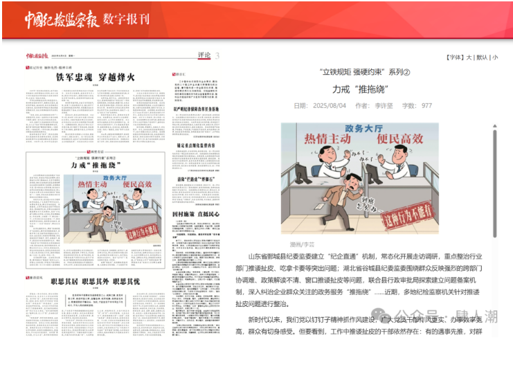 “門(mén)難進(jìn)、臉難看、事難辦”,群眾對(duì)一些基層機(jī)關(guān)的印象,至今仍未完全改觀。辦事大廳形同“冷宮”、政務(wù)服務(wù)像“踢皮球”,面對(duì)群眾訴求不是接招而是卸責(zé),“衙門(mén)作風(fēng)”不僅拖慢了辦事效率,更直接損害了黨和政府的公信力。中央紀(jì)委國(guó)家監(jiān)委最新通報(bào)顯示,2025年上半年,全國(guó)共查處群眾工作中“冷硬橫推、推諉扯皮”等作風(fēng)問(wèn)題4208起。整治“庸懶散躲推”的風(fēng)氣,正成為紀(jì)檢監(jiān)察系統(tǒng)的重要發(fā)力點(diǎn)。