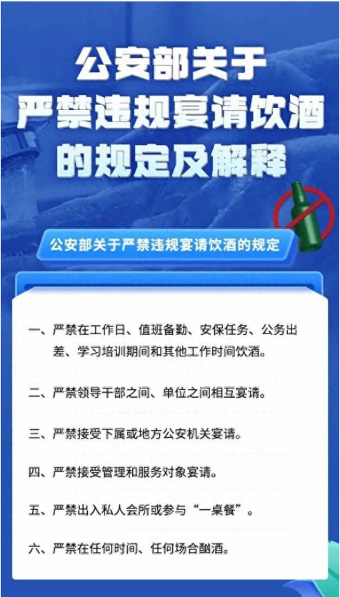 公安部關(guān)于嚴(yán)禁違規(guī)宴請(qǐng)飲酒的規(guī)定