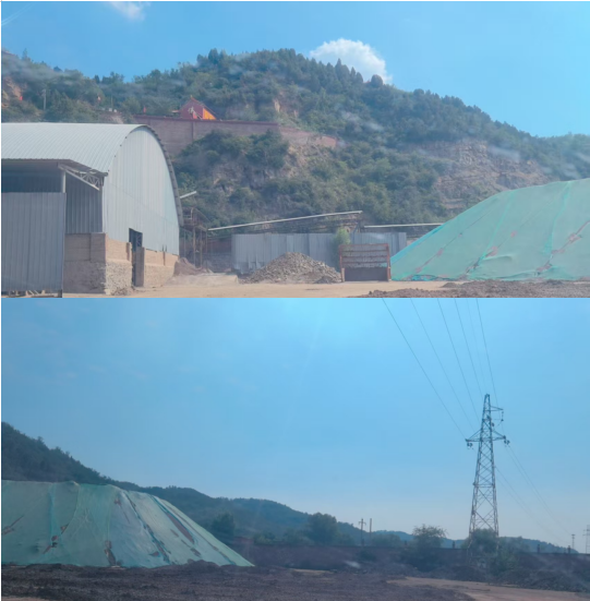 從照片中可以看到該黑石料場(chǎng)規(guī)模很大,場(chǎng)地堆放著很多砂石料。生產(chǎn)區(qū)域粉塵滿天飛,沒有采取噴淋灑水等防揚(yáng)塵環(huán)保設(shè)施,廠區(qū)周圍道路植被都已被粉塵污染鋪滿。