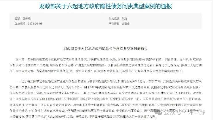 2025年8月財政部通報的6起隱性債務(wù)案例,地方上通過平臺公司融資代建、墊資開發(fā)、承諾收益回購等方式,形成巨額隱性債務(wù),