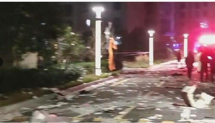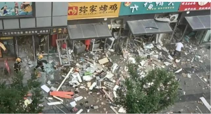 山東泰安綠地公館一層的一門頭房發(fā)生爆炸