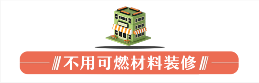 建筑物的吊頂、墻面等裝修應(yīng)采用不燃或難燃材料,室外廣告牌、遮陽(yáng)棚等應(yīng)釆用不燃或難燃材料制作,且不應(yīng)影響房間內(nèi)釆光、排風(fēng)、輔助疏散設(shè)施的使用。