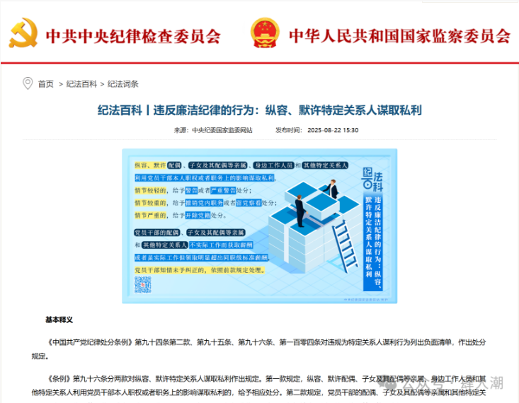 不是你親手干的,就能一身輕松?別天真了有些黨員干部常抱有這樣一種僥幸心理:只要不是自己親手經(jīng)辦,就算家屬、子女或身邊人“搭了個順風(fēng)車”,也不算違紀(jì)違法。《黨紀(jì)處分條例》已明確劃出紅線——縱容、默許特定關(guān)系人利用本人職務(wù)影響謀取私利,同樣構(gòu)成違紀(jì)行為,必須嚴(yán)肅處理。在全面從嚴(yán)治黨的高壓態(tài)勢下,權(quán)力不再是干部的“私產(chǎn)”,更不是家庭可以任意使用的工具。不能守住家庭這道關(guān)口,枕邊人、子女、朋友一旦越界,黨員干部也難辭其咎。