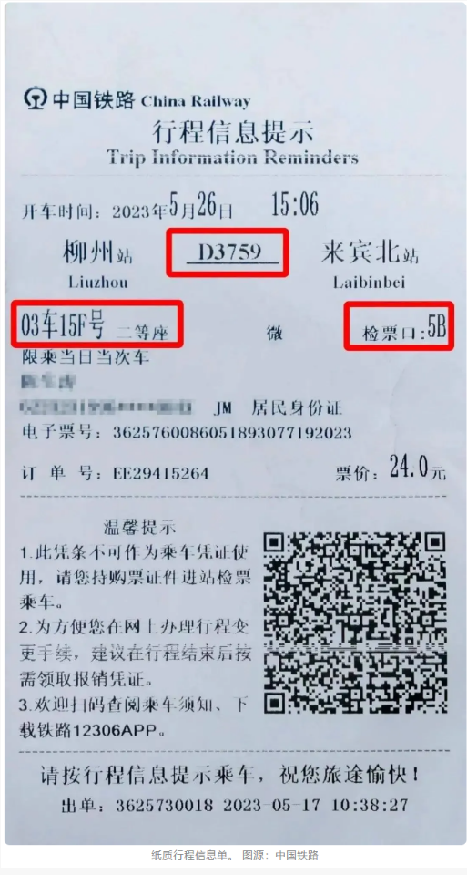 旅客在紙質(zhì)火車票上會看到