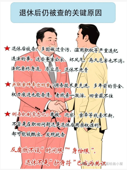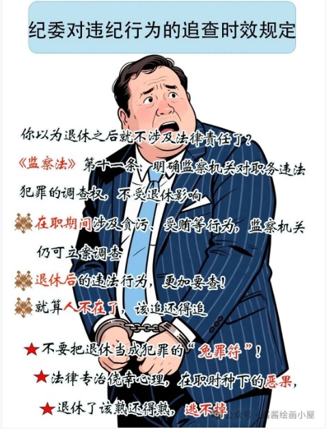 無論是在職還是退休人員,只要行為觸犯黨紀(jì)國法,均可能被立案調(diào)查并追究相應(yīng)責(zé)任,不要心存僥幸。