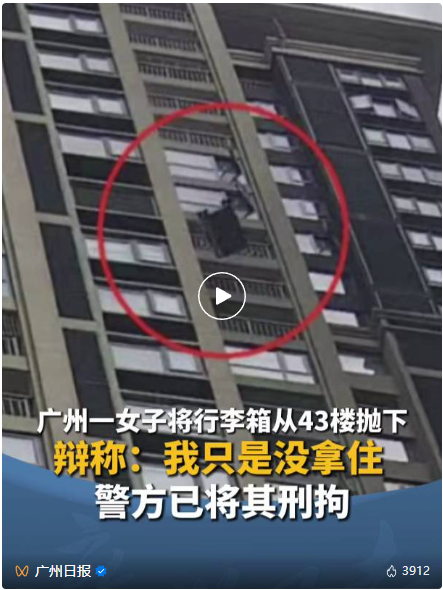失手將行李箱從陽(yáng)臺(tái)丟下