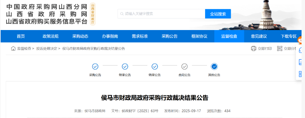 侯馬市政府采購中心受侯馬市第二中學校委托組織侯馬市第二中學校新校區(qū)設施設備采購項目(IP網(wǎng)絡廣播、主席臺燈光系統(tǒng)、擴音系統(tǒng)、精品錄播教室設施設備、圖書館圖書和設備、心理圖書等)包一的公開招標采購活動,并分別于2025年7月4日、7月29日在中國政府采購網(wǎng)山西分網(wǎng)發(fā)布采購公告和結(jié)果公告,包一中標供應商為山西凱恒匯智電子科技有限公司。7月30日,投訴人向侯馬市政府采購中心提出質(zhì)疑。8月1日,侯馬市政府采購中心向投訴人作出質(zhì)疑答復。投訴人對質(zhì)疑答復不滿,向本機關(guān)提起投訴。