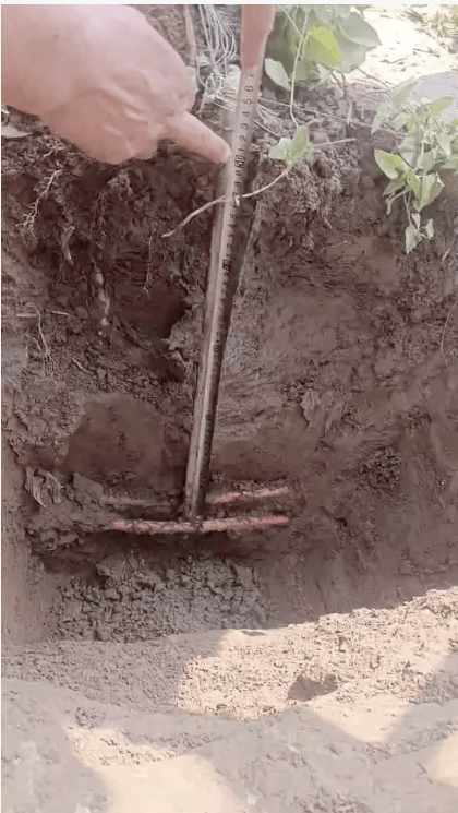 從家屬提供的圖片看,地埋線不但高度未達(dá)標(biāo),電纜上下方也沒有鋪設(shè)砂層,更別說蓋混凝土保護(hù)板了。當(dāng)?shù)卣嘘P(guān)負(fù)責(zé)人表示,地埋線是當(dāng)?shù)厥畮讉€(gè)農(nóng)戶為澆地自行鋪設(shè)的,接的是供電局的變壓器。