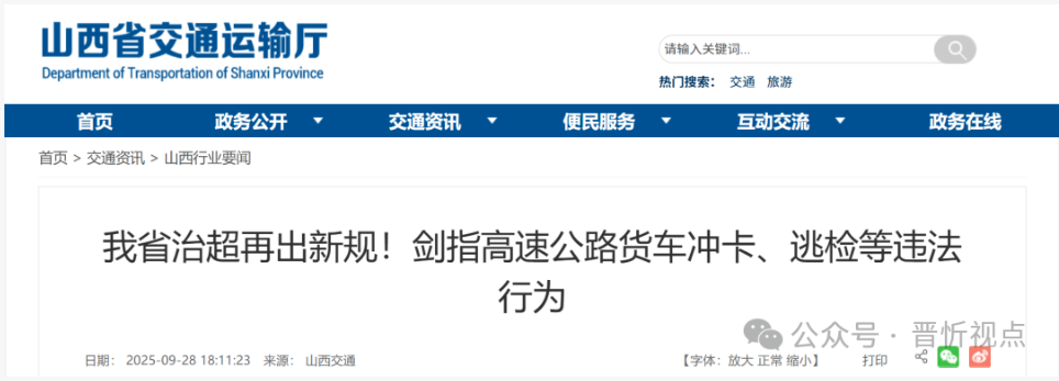該通知是治超領(lǐng)域一項(xiàng)具有針對(duì)性和操作性的制度性規(guī)定,對(duì)于規(guī)范貨運(yùn)秩序、堵塞執(zhí)法漏洞、提升治理質(zhì)效具有重要意義。下一步,全省交通運(yùn)輸和公安部門(mén)將以此為抓手,進(jìn)一步壓實(shí)治超工作的企業(yè)主體責(zé)任和行業(yè)監(jiān)管責(zé)任,健全完善源頭治理、路面管控、信用懲戒相結(jié)合的工作體系,推動(dòng)治超工作向信息化、常態(tài)化、系統(tǒng)化方向縱深發(fā)展,為山西省公路交通安全運(yùn)行提供更加堅(jiān)實(shí)的保障。