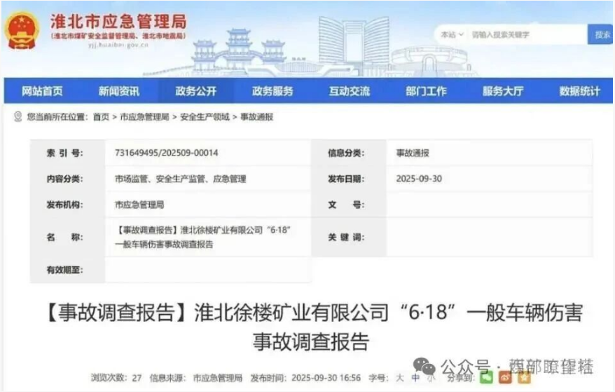 2025年6月18日,淮北徐樓礦業(yè)有限公司-205水平7-7采場(chǎng)鏟運(yùn)機(jī)出礦時(shí)發(fā)生一起車輛傷害事故,造成1人遇難,直接經(jīng)濟(jì)損失200萬(wàn)元。