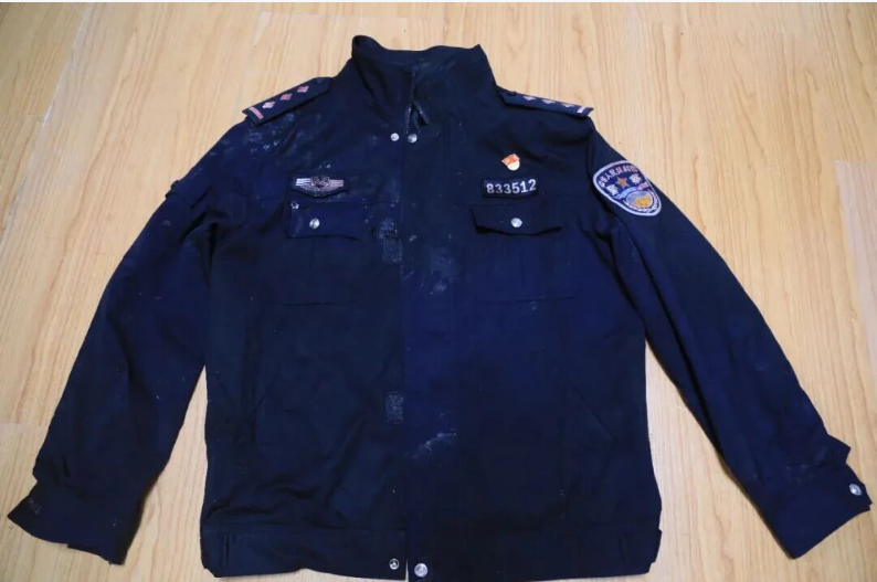 圖為鄭亮犧牲時(shí)身著的警服,已被鮮血浸透。