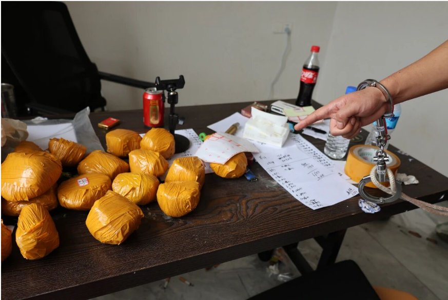 9月16日下午接到通報后,我們就立即安排人員對窩點、嫌疑人進行落地研判,通過前期摸排,發(fā)現(xiàn)嫌疑人在一出租房內(nèi)實施賭石詐騙。