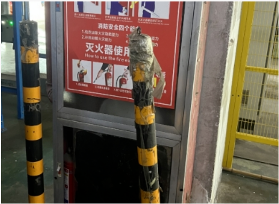 分揀場所部分消防設(shè)備(消火栓、滅火器)未定期檢查維護(hù),部分消防雙外側(cè)防護(hù)樁移位,影響消防設(shè)備直接使用。不符合《郵政快件處理場所、營業(yè)場所安全管理規(guī)范化二十條細(xì)則》第十六有關(guān)規(guī)定。