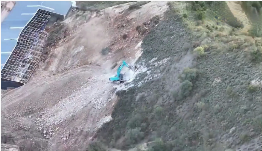 4. 大面積原生植被被鏟除,裸露黃土與周邊綠色林區(qū)形成強(qiáng)烈反差,部分破壞區(qū)域緊鄰林區(qū),疑似涉及林地違規(guī)占用。