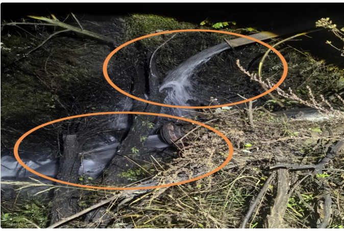 10月31日凌晨,記者再度前往現(xiàn)場調(diào)查,發(fā)現(xiàn)此前的三處暗管中,有兩處正大量排放污水。