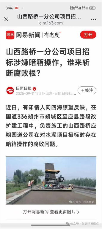 山西路橋應(yīng)朔國道公司在招標(biāo)過程中暗箱操作,故意設(shè)置排他程序,為特定企業(yè)大開方便之門的做法,不知有關(guān)部門是視而不見?還是發(fā)現(xiàn)問題積極行動,確保習(xí)近平總書記重要講話和重要指示批示精神落地做實(shí)。