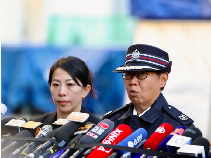 12月1日下午5時(shí),香港特區(qū)政府警務(wù)處在召開新聞發(fā)布會(huì),通報(bào)宏福苑火災(zāi)最新情況。
